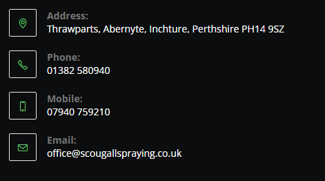 We have four New Holland tractors fitted with Scorgie sprayers which are ideal for the terrain around Perthshire and Angus. As agricultural spraying specialists we pride ourselves on being able to provide a timely and professional service.